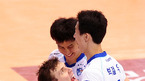 [OSEN=대전,박준형 기자]13일 오후 대전충무체육관서 열린 '2010-2011 NH농협V리그' 삼성화재와 현대캐피탈의 경기 2세트 삼성화재 박철우의 블로킹 성공때 가빈이 박철우를 안고 환호하고 있다 . /soul1014@osen.co.kr