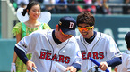 [OSEN=잠실,박준형 기자] 5일 오후 서울 잠실구장에서 열리는 '2011 롯데카드 프로야구' 두산 베어스와 LG 트윈스의 경기전 어린이날을 맞아 두산 고영민과 오재원이 자전거 대결을 펼치고 있다. / soul1014@osen.co.kr