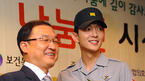 [OSEN=박준형 기자] 배우 이준기와 가수 박효신이 24일 오전 서울 시청 프레스센터에서 열린 이달의 나눔인 시상식에 참석해 보건복지부 장관상을 수상했다. 이준기가 거수경례를 하고 있다. / soul1014@osen.co.kr