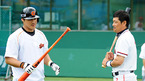 [OSEN=사직,지형준기자] 30일 오후 부산 사직구장에서 열린 '2011 롯데카드 프로야구' 롯데 자이언츠와 KIA 타이거즈의 경기에 앞서 롯데 홍성흔이 KIA 이종범과 서로의 방망이에 대해 이야기를 나누고 있다. /jpnews@osen.co.kr