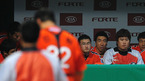 [OSEN=광주,지형준기자] 1일 오후 광주구장에서 열린 '2011 롯데카드 프로야구' KIA 타이거즈와 한화 이글스의 경기, 1회말 수비에서 한화 김혁민이 3실점을 하자 불펜에서 류현진이 격려를 하고 있다. /jpnews@osen.co.kr