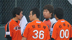 [OSEN=광주,지형준기자] 1일 오후 광주구장에서 열린 '2011 롯데카드 프로야구' KIA 타이거즈와 한화 이글스의 경기, 1회말 수비에서 한화 김혁민이 3실점을 하자 불펜에서 정민철 코치와 류현진이 격려를 하고 있다. /jpnews@osen.co.kr