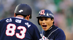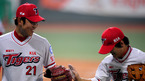 [OSEN=광주,지형준기자] 1일 오후 광주구장에서 열린 '2011 롯데카드 프로야구' KIA 타이거즈와 한화 이글스의 경기, 4회초 수비를 마친 KIA 윤석민이 김선빈과 하이파이브를 하고 있다. 김선빈은 4회초 1사에서 한화 가르시아의 타구를 몸