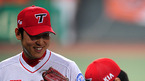 [OSEN=광주,지형준기자] 1일 오후 광주구장에서 열린 '2011 롯데카드 프로야구' KIA 타이거즈와 한화 이글스의 경기, 1회말 수비에서 3실점을 한 한화 김혁민이 2회 수비에서는 무실점으로 호투하자 류현진을 비롯한 한화 투수들이 불펜에서 환한 미소로 김혁민