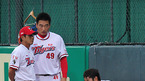 [OSEN=광주,지형준기자] 1일 오후 광주구장에서 열린 '2011 롯데카드 프로야구' KIA 타이거즈와 한화 이글스의 경기, 1회초 수비를 마친 KIA 윤석민이 불펜에서 땀을 닦고 있다. /jpnews@osen.co.kr