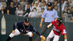 [OSEN=잠실,이대선 기자] 2일 '2011 롯데카드 프로야구' LG 트윈스와 두산 베어스의 경기가 잠실야구장에서 열렸다. 11회초 무사 1루 두산 정진호의 내야땅볼때 1루주자 김현수가 포스아웃 당한뒤 아쉬워 하고 있다. / sunday@osen.co.kr