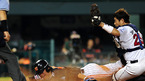 [OSEN=잠실,이대선 기자] 6일 '2011 롯데카드 프로야구' 두산 베어스와 롯데 자이언츠의 경기가 잠실야구장에서 열렸다. 6회초 2사 1,3루 롯데 문규현 타석때 3루주자 강민호가 홈스틸을 시도헀으나 태그아웃되고 있다. /