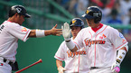 [OSEN=잠실,이대선 기자] 6일 '2011 롯데카드 프로야구' 두산 베어스와 롯데 자이언츠의 경기가 잠실야구장에서 열렸다. 5회초 1사 3루 롯데 손아섭의 1타점 적시타때 3루주자 전준우가 홈을 밟고 동료들과 기쁨을 나누고 있다. / sunday@osen.co.kr