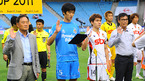[OSEN=울산,박준형 기자] 6일 오후 울산 문수월드컵경기장서 열린 '2011 러시앤캐시컵' 준결승전 울산 현대와 경남 FC의 경기전 울산 김호곤 감독과 곽태희, 경남 최진환 감독과 이훈이 승부조작 근절 선서를 하고 있다&n