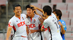 [OSEN=울산,박준형 기자] 6일 오후 울산 문수월드컵경기장서 열린 '2011 러시앤캐시컵' 준결승전 울산 현대와 경남 FC의 경기전 전반 경남 이효균이 선취골을 넣고 동료들과 기쁨을 나누고 있다./ soul1014@osen.co.kr