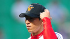 [OSEN=문학, 민경훈 기자] 6일 오후 문학 구장에서 '2011 롯데카드 프로야구' SK 와이번스와 삼성 라이온즈의 경기가 열렸다. 4회말 무사 주자 2루 삼성 선발 배영수가 와일드피칭으로 2루 주자 조동화를 3루에 보내게되자 어이없이 웃고 있다./ rumi@osen.co.kr