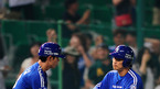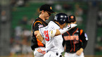 [OSEN=문학, 민경훈 기자] 6일 오후 문학 구장에서 '2011 롯데카드 프로야구' SK 와이번스와 삼성 라이온즈의 경기가 열렸다. 6회초 1사 주자 1,2루 삼성 신명철이 좌월 스리런 홈런을 날린 후 덕아웃에서 류중일 감독에게 엉덩이를 맞고 있다./ rumi@osen.co.kr