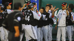 [OSEN=대전,박준형 기자] 7일 오후 대전 한밭구장에서 열린 '2011 롯데카드 프로야구' 한화 이글스와 LG 트윈스의 경기 2회초 LG 선두타자 조인성이 선취 솔로홈런을 날리고 더그아웃에서 동료들로부터 환영을 받고 있다. / soul1014@osen.co.kr