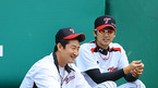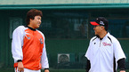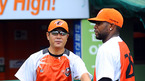 [OSEN=대전,박준형 기자] 7일 오후 대전 한밭구장에서 열리는 '2011 롯데카드 프로야구' 한화 이글스와 LG 트윈스의 경기전 한화 정민철 코치와 바티스타가 이야기를 나누고 있다. / soul1014@osen.co.kr
