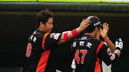 [OSEN=대구,박준형 기자] 8일 오후 대구구장에서 열린 '2011 롯데카드 프로야구' 삼성 라이온즈와 두산 베어스의 경기 4회말 1사에서 삼성 박한이가 선취 중월 솔로홈런을 날리고 더그아웃에서 동료들의 축하를 받고 있다 . / soul1014@osen.co.kr