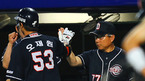 [OSEN=문학, 민경훈 기자] 8일 오후 문학 구장에서 '2011 롯데카드 프로야구' SK 와이번스와 롯데 자이언츠의 경기가 열렸다.5회초 1사 주자 없는 상황에서 롯데 강민호가 중월 솔로 홈런을 날린 후 덕아웃에서 양승호 감독과 하이파이브를 하고 있다. / rumi