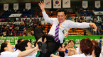 [OSEN=광명실내체,지형준 기자] 10일 오후 서울 광명실내체육관에서 열린 2011 SK 핸드볼 코리아리그 남자부 챔피언전 2차전 두산과 충남체육회의 경기, 전반 두산 박중규가 골을 성공시키고 기뻐하고 있다. /jpnews@osen.co.kr