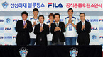 [OSEN=이대선 기자] 프로배구 삼성화재블루팡스와 휠라코리아의 2011~2012시즌 용품후원조인식이 15일 오전 서울 을지로 삼성화재본사에서 열렸다. 삼성화재블루팡스는 향후 2년간 휠라코리아로부터 총 7억 상당의 용품을 지원 받으며, 이에 따른 공동 홍보 및