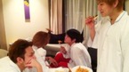 [OSEN=장창환 인턴기자] 아이돌 그룹 비스트가 한밤에 만찬을 즐겼다. 비스트의 멤버 윤두준은 지난 14일 오후 자신의 트위터에 "내 방 와서 자기들끼리 맘대로 먹을 거 시키고 안 나가는..카메라 들이대니 설정"이라는 글과 함께 사진을 공개했다.&nbs