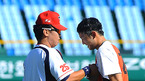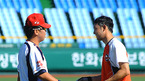 [OSEN=대전,박준형 기자] 20일 오후 대전 한밭구장에서 열리는 '2011 롯데카드 프로야구' 한화 이글스와 KIA 타이거즈의 경기전 KIA 이범호가 한화 전현태에게 장난을 치고 있다. 전날 경기에서 전현태는 9회말 2타점을 기록하며 역전승의 발판을