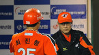 [OSEN=사직,박준형 기자] 5일 오후 부산 사직구장에서 열린 '2011 롯데카드 프로야구' 롯데 자이언츠와 한화 이글스의 경기 3회초 2사 한화 최진행이 솔로홈런을 날리고 한대화 감독 하이파이브를 하고 있다. 플레이오프 직행을 확
