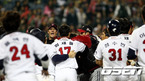 [OSEN=잠실, 박광민 기자] '잠실 라이벌' LG 트윈스와 두산 베어스가 2일 잠실구장에서 열린 시즌 18번째 맞대결에서 충돌했다. 두산이 10-1로 크게 앞선 7회말 2사 후 오재원 타석 때 LG 구원투수 유원상이 던진 공이 오재원의 머리
