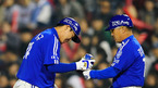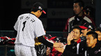 [OSEN=잠실, 민경훈 기자] 6일 오후 잠실구장에서 열린 '2011 롯데카드 프로야구' LG 트윈스와 삼성 라이온즈의 정규 시즌 마지막 경기에서 5회초 1사 주자 3루 삼성 강봉규의 중견수 앞 1타점 적시타때 홈을 밟은 최형우가 덕아웃에