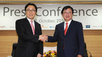 [OSEN=부산,지형준 기자] 7일 오후 부산 해운대 그랜드호텔 그랜드볼룸에서 열린 영화 '양귀비' 제작보고회에서 곽재용 감독이 중국 배우 판빙빙에게 한복을 선물하고 있다. 판빙빙 왕리훙 온주완 등이 출연하는 '양귀비'(곽재용