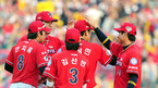 [OSEN=인천, 민경훈 기자] '2011 롯데카드 프로야구' SK 와이번스와 KIA 타이거즈의 준플레이오프 1차전이 8일 문학야구장에서 열렸다. 이 날 경기에서 윤석민의 1실점 압권의 호투와 차일목의 만루포에 힘입어 5-1로 SK에 승리를 거