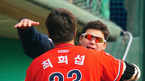 [OSEN=인천, 민경훈 기자] '2011 롯데카드 프로야구' SK 와이번스와 KIA 타이거즈의 준플레이오프 2차전이 9일 문학야구장에서 열렸다. 5회초 1사 주자 없는 상황에서 KIA 최희섭이 좌월 솔로홈런을 날린 후 덕아웃에서 서재응과 기쁨