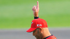 [OSEN=인천, 민경훈 기자] '2011 롯데카드 프로야구' SK 와이번스와 KIA 타이거즈의 준플레이오프 2차전이 9일 문학야구장에서 열렸다. 6회말을 마친 후 KIA 선발 로페즈가 하늘을 향해 사인을 보내고 있다. 준플레이오프 2차전에서는