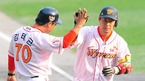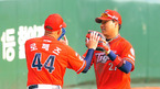 [OSEN=인천, 민경훈 기자] '2011 롯데카드 프로야구' SK 와이번스와 KIA 타이거즈의 준플레이오프 2차전이 9일 문학야구장에서 열렸다. 4회말을 마친 후 KIA 선발 로페즈가 김상현과 하이파이브를 하고 있다. 준플레이오프 2차전에서