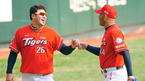[OSEN=인천, 민경훈 기자] '2011 롯데카드 프로야구' SK 와이번스와 KIA 타이거즈의 준플레이오프 2차전이 9일 문학야구장에서 열렸다. 2회말을 마친 KIA 선발 로페즈가 덕아웃으로 들어오며 서재응과 하이파이브를 하고 있다. 준플레