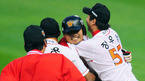 [OSEN=인천, 김영민 기자] '2011 롯데카드 프로야구' SK 와이번스와 KIA 타이거즈의 준플레이오프 2차전이 9일 문학야구장에서 열렸다. 연장 11회말 2사 만루 이호준이 끝내기 안타를 날리고 정근우의 환영을 받으며 환호하고 있다. 3