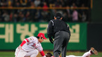 [OSEN=광주, 김영민 기자] '2011 롯데카드 프로야구' KIA 타이거즈와 SK 와이번스의 준플레이오프 3차전이 11일 오후 광주 무등 야구장에서 열렸다. 5회초 2사 1루 정근우 타석때 1루 주자 임훈 2루 도루 아웃처리되고 있다. 준플레이오