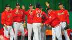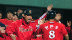 [OSEN=광주, 김영민 기자] '2011 롯데카드 프로야구' KIA 타이거즈와 SK 와이번스의 준플레이오프 4차전이 12일 오후 광주 무등 야구장에서 열렸다. 3회초 1사 1,2루 최정 2타점 적시타때 2루 주자 정근우 득점을 올리며 이만수 감독대