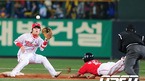 [OSEN=광주, 김영민 기자] '2011 롯데카드 프로야구' KIA 타이거즈와 SK 와이번스의 준플레이오프 4차전이 12일 오후 광주 무등 야구장에서 열렸다. 3회초 1사 1루 박재상 타석때 1루 주자 정근우 2루 도루 세이프 되고 있다. 3선승제의