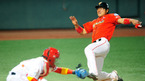 [OSEN=광주, 김영민 기자] '2011 롯데카드 프로야구' KIA 타이거즈와 SK 와이번스의 준플레이오프 4차전이 12일 오후 광주 무등 야구장에서 열렸다. 2회말 1사 만루 이현곤의 2루수앞 직선타구때 2루 주자 나지완 황급히 2루로 귀루 세
