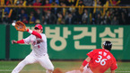 [OSEN=광주, 민경훈 기자] '2011 롯데카드 프로야구' KIA 타이거즈와 SK 와이번스의 준플레이오프 4차전이 12일 오후 광주 무등 야구장에서 열렸다. 2회말 첫타석에서 KIA 김상현의 유격수 오른쪽 내야안타를 잡은 SK 유격수 박진만이