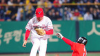 [OSEN=광주, 민경훈 기자] '2011 롯데카드 프로야구' KIA 타이거즈와 SK 와이번스의 준플레이오프 4차전이 12일 오후 광주 무등 야구장에서 열렸다. 5회초 2사 주자 2루 SK 박재상의 좌익수앞 1타점 적시타때 홈을 밟은 정근우가 이만수