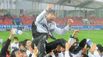 [OSEN=성남, 민경훈 기자] 15일 오후 성남탄천종합운동장서 열린 '2011 하나은행 FA컵' 성남 일화와 수원 삼성의 결승전에서 후반 32분 터진 조동건의 헤딩골에 힘입어 1-0으로 승리했다. 경기를 마치고 성남 신태용 감독 헹가레를 받