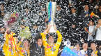 [OSEN=성남, 민경훈 기자] 15일 오후 성남탄천종합운동장서 열린 '2011 하나은행 FA컵' 성남 일화와 수원 삼성의 결승전에서 후반 32분 터진 조동건의 헤딩골에 힘입어 1-0으로 승리했다. 성남이 사샤가 FA 트로피를 들고 환호하고 있