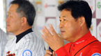 [OSEN=부산,박준형 기자] 15일 오후 부산 사직구장 내 특설무대에서 열린 '2011 롯데카드 프로야구 포스트시즌 플레이오프 미디어데이'에서 SK 이만수 감독대행이 소감을 말하고 있다. 이날 미디어데이에서 롯데는 양승호 감독과