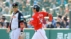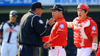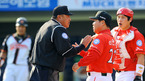 [OSEN=부산,박준형 기자]16일 오후 부산 사직구장서 열린 2011 롯데카드 프로야구 플레이오프 1차전 롯데 자이언츠와 SK 와이번스의 경기 4회말 1사 1루 상황 롯데 김주찬의 삼진아웃때 SK 이만수 감독대행이 그라운드로 나와 오석