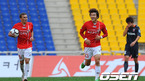 [OSEN=부산월드컵경기장,이대선 기자] '현대오일뱅크 K리그 2011' 부산 아이파크와 제주 유나이티드의 경기가 16일 부산월드컵경기장에서 열렸다. 전반 부산 임상협이 선제골을 성공시키고 환호하고 있다. /sunday@osen.co.kr