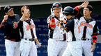 [OSEN=부산,박준형 기자]16일 오후 부산 사직구장서 열린 2011 롯데카드 프로야구 플레이오프 1차전 롯데 자이언츠와 SK 와이번스의 경기 1회말 롯데 선두타자 김주찬이 선취 솔로홈런을 날리고 동료들의 축하를 받고 있다 . 롯데는