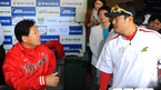 [OSEN=부산,이대선 기자] 2011 롯데카드 프로야구 플레이오프 1차전, 16일 부산사직구장에서 롯데 자이언츠와 SK 와이번스의 플레이오프 1차전 경기가 벌어졌다. 경기 전 SK 이만수 감독대행이 이호준을 불러 격려를 하고 있다. 롯