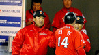 [OSEN=부산,박준형 기자]17일 오후 부산 사직구장서 열린 2011 롯데카드 프로야구 플레이오프 2차전 롯데 자이언츠와 SK 와이번스의 경기 7회초 무사 1,2루 상황에서 SK 박정권이 1타점 적시타때 이만수 감독대행이 환호하며 최정을