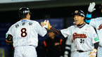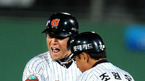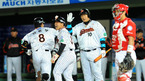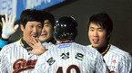 [OSEN=부산,손용호 기자] 2011 롯데카드 프로야구 플레이오프 2차전 6회말 2사 2루서 강민호의 적시타때 홈을 밟은 홍성흔을 전준우가 반갑게 맞이하고 있다. 17일 부산 사직구장에서 벌어진 플레이오프 2차전서 롯데는 양승호 감독