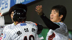 [OSEN=부산,손용호 기자] 2011 롯데카드 프로야구 플레이오프 2차전 6회말 2사 2루서 강민호의 적시타때 홈을 밟은 홍성흔이 전준우의 환영을 받고 있다. 17일 부산 사직구장에서 벌어진 플레이오프 2차전서 롯데는 양승호 감독이